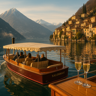 16:00–17:30: Private Salon Boat Cruise with Skipper Board a heated, covered salon boat for a private winter cruise on Lake Lugano. Panoramic windows frame pastel villages, mountains, and city lights as dusk approaches. The cruise ends directly at Villa Castagnola’s private dock.